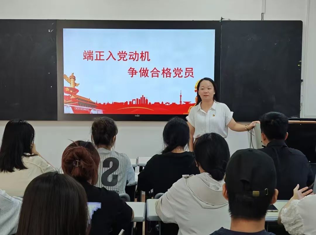 商务系党总支组织委员、第一党支部书记李丽悉为入党积极分子介绍了从入党申请人、入党积极分子、发展对象、预备党员、正式党员五个环节的发展流程,并对相关材料的填写做了详细地讲解。
