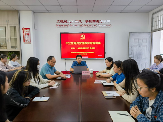 5月24日上午,会审系2024届毕业生党员党性教育大会在西教学楼会议室举行,学院党委副书记陈金通为即将踏上新的人生旅程的毕业生党员上专题党课。